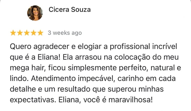 Nossas clientes relatam satisfação com a qualidade e conforto do alongamento capilar realizado por Eliane.